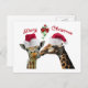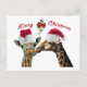 Cartão Postal De Festividades Beijar Girafas de Natal Sob Mistura