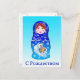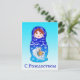 Uma linda boneca russa (Matryoshka) com as palavras Feliz Natal em russo. A inscrição está em cirílico. Dentro de saudação em inglês