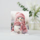 Cartão Postal De Festividades Bonito boneco de neve rosa