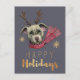 Cartaz de Natal bonito e caprichoso com a ilustração aquosa de um cão aterrorizante de cinza americana, com traficantes e um cachecol vermelho. O texto falsa do ouro diz "feriados felizes".