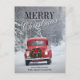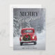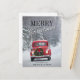Cartão Postal De Festividades Caminhão de coleta vermelho na neve