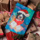 Características do Cão da Raça Montanha Bernesa Natal incluem uma aquarela de um Montanha Bernesa com um chapéu de Papai Noel vermelho, um cachecol de Natal vermelho e uma aquarela de galáxia.
