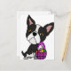 Cartão Postal De Festividades Cão engraçado de Boston Terrier com cesta da
