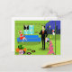 Este Cartão-postal de Natal Retro Urbano apresenta o desenho animado de um elegante apartamento de penthouse, todos decorados para os feriados com filamentos coloridos de luzes de Natal e uma gatinha, rosa, árvore de Natal, cheia de enfeites e uma estrela amarela. O apartamento tem um chão verde e uma parede de tijolos verdes. Na parede estão quatro Classic Movie Martini Stretered Canvas Prints, também disponível na loja Zazzle da StrangeLittleOnion (dica, dica!). Três dos impressões apresentam fundo turquesa e um está sobre fundo preto. Abaixo das telas impressas, está um sofá azul, meio século moderno. Uma beleza sofisticada e cabeleira está sentada no sofá. Ela está vestindo um vestido vermelho e vibrante e um chapéu de Papai Noel. Em uma mão, ela está segurando um punho de maleta preso com um arco vermelho. No lado oposto da sala há um homem suave, alto, escuro e bonito. Ele está vestindo um terno preto, camisa branca e gravata vermelha. Por um lado, ele está segurando um álbum de vinil, e, por outro, ele está segurando um cobrir divertido. No chão, há um otomano laranja segurando um toca-discos verde e preto. Projetado contra o otomano é outro cobrir de álbum com um registro sendo lançado para fora do lado. Há também três álbuns coloridos de vinil espalhados pelo chão. Atrás do homem, podemos ver, através de portas de vidro deslizantes, neve caindo em uma varanda verde e a cidade abaixo. Um gato branco vestindo um arco vermelho ao redor do pescoço está preso na borda da sacada. Além do gato, há uma linha do horizonte da cidade que respira, cheia de arranha-céus e uma lua crescente amarela. Se é assim que a outra metade vive, inscreva-me!