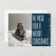 Cinza "Desejamos-Lhe Feliz Natal num fundo azul profundo com uma borda branca nevada. Adicione sua foto para torná-la pessoal. O verso diz "E um Feliz ano novo e inclui sua assinatura totalmente editável com seu nome de família, nomes de indivíduos e o ano. Este postal tem uma vibração muito na moda, moderna.