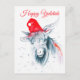 Cartão de solstício de inverno personalizado com cabra branca de chapéu de Natal. Arte por aquarela de Zaira Dzhaubaeva.