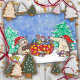 Uma coruja e uma família de ouriços abrem seus presentes na neve.