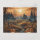Cartão Postal De Festividades Casa Assombrada de Lua Cheia Pumpkins Halloween
