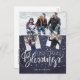 Cartões de natal sazonais da família 3 cartões postais de colagem fotográficos em um fundo azul-marinho azul-escuro do quadro-quadro com neve em queda e script de caligrafia branca "Blessings de Natal".+++++ É fácil personalizar com suas fotos e texto em ambos os lados!