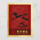 Pintura original de lavagem n°2 de um Cavalo por RB. Design no cartão postal de feriado vertical com vários símbolos chineses de caligrafia de Fu (que significa sorte) num fundo vermelho + antiga caligrafia chinesa para Cavalo + Desejos em chinês e inglês emoldurados com papel texturizado em ouro (imagem impressa) + textos para personalizar na parte de trás do cartão-postal.