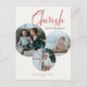 Estes cartões postais de Natal de 4,25" x 5,6" contêm espaços reservados para três das suas fotos favoritas, nome da família e ano. A saudação, "Cherish a cada momento", em cinzas vermelhas e suaves sobre um fundo de marfim leve.