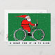 Design de bicicleta Holiday apresentando Papais noeis andando de bicicleta acima das palavras: O, que divertido é andar