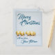 Cartão Postal De Festividades Cinco bolas de natal de ouro - escrevendo azul