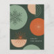 Esse desenho abstrato apresenta vários elementos circulares em cores festivas, incluindo verdes, laranjas e bege claro, decorados com flocos de neve minimalistas e formas estelares. O olhar simples e moderno o torna versátil para qualquer cartões de natal.