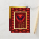 Ilustração moderna de uma cabeça cobra em cores vermelhas (modelo n°1) em um quadro ouro com fundo vermelho escuro. Design no cartão postal vertical + 2025 + Desejos em chinês e inglês + textos para personalizar no verso do cartão postal. Cartão de saudação, adesivo (e mais cedo)... Perfeito para o Ano Novo Chinês do Cobra 2025.