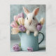 Cartão Postal De Festividades Coelhinho Adorável Peeking de um Pitcher de Tulips