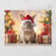 Cartão Postal De Festividades Coelho Natal sentado com um chapéu de Papai Noel