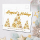 Um cartão-postal de férias da empresa de guiões de ouro-chic com 3 belas árvores feitas de flocos de neve ouros abaixo de Feriados Happiest escritos em guião cursiva. Adicione o nome da sua empresa abaixo. Personalize esses cartões postais corporativos para marketing clientes no inverno.