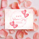 Este postal apresenta uma design romântica e tenra, ideal para o Dia de os namorados. A placa apresenta um delicado fundo aquoso em tons de branco cor-de-rosa e macio, criando um efeito sonhador e etéreo. No centro do design estão três corações aquarelas em um vermelho rosado e rico, aparentando flutuar no cartão, simbolizando amor e afeto. Estes corações são acentuados com texturas sutis, sugerindo um toque feito à mão. Encerrar os corações é uma linha pontilhada formando um círculo vicioso e incompleto, adicionando uma borda lúdica e criativa ao ponto focal. A saudação do "Feliz dia de os namorados" é exibida de forma destacada em uma escrita elegante e cursiva, com uma fonte serif contrastante para a mensagem que a acompanha "Tenho sorte de ter-te a minha querida". Essa mensagem secundária oferece um toque pessoal, fazer a carta perfeita para expressar um sentimento sincero. Este cartão postal é uma escolha encantadora para qualquer pessoa que queira transmitir seu amor e apreço a uma pessoa especial no Dia de os namorados, e está pronto para ser personalizado e compartilhado com uma namorada.