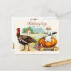 Cartão bonito da acção de graças do vintage que mostra uma equitação nova do cozinheiro chefe em um vagão da abóbora, que seja puxado por um peru!