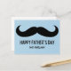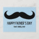 Este Cartão-postal do Dia de os pais apresenta um design ousado e lúdico, perfeito para celebrar um pai especial. A frente mostra um bigode preto grande e estilizado colocado sobre um fundo azul claro pontilhado com bolinhas brancas. Sob o bigode, os textos "Dia de os pais feliz" e "melhor pai de sempre" são exibidos em caracteres divertidos e fáceis de ler, capturando o calor e afeto da ocasião. Adicionando um toque pessoal, a parte traseira do cartão é personalizável, permitindo que você adicione uma mensagem sincera e personalizável que torna este cartão tão único quanto o pai que ele está celebrando.