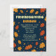 Reúna seus amigos por um banquete de feriado divertido com este janto de na moda e de Ação de Amizade moderno ou coloque o cartão postal. A design apresenta folhas laranja e amarela caindo contra um fundo azul escuro contrastante. Este cartão é totalmente personalizável com seu endereço, detalhes de RSVP e uma nota especial sobre como trazer um prato lateral para um janto de sorte.