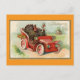Foto bonita e elegante de dois perus andando em um carro vermelho, é apresentada neste cartão postal do Dia de Ação de Graças. Na frente do cartão-postal lê-se "Dia de Ação de Graças" e na parte de trás do cartão-postal lê-se: "Que você goste do dia com a família e os amigos. Feliz Dia de Ação de Graças"! Uma carta colorida para dar aos amigos e à família para o feriado de Ação de Graças.