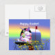 Um coelho numa caixa de correio brincando com ovos de Páscoa.