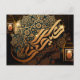 Cartão Postal De Festividades Eid Mubarak Padrão Árabe Caligrafia Castanho Doura