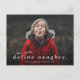Um cartão de Natal humorístico com 3 fotos, com uma simples tipografia, define uma saudação travessa na frente. A parte de trás é um postal endereçável com uma saudação de feliz ano novo e 2 fotos com mensagem e nomes pessoais. Clique no botão editar para personalizar este design.