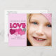 Adicione sua própria foto para enviar seu amor aos amigos e à família no Dia de os namorados. Você pode facilmente alterar o texto para adicionar seus nomes familiares. O amor é escrito em grandes letras cor-de-rosa-escuro com cinco corações abaixo. Quatro são diferentes tons de rosa e um é cinza rústica. Feliz dia de os namorados é escrito no verso em um script bonito. Seu endereço de devolução está acima. Eu repeti o design do coração no fundo.