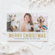 Feliz Natal | Espalhe a alegria de férias com um pequeno brilho com este cartão postal de Natal multifoto na moda. Este cartão-postal de Natal moderno apresenta falso brilho dourado e tipografia moderna com uma colagem de três fotos. Personalize adicionando seus detalhes. Este cartão postal de Natal personalizado para colagem de fotos está disponível em outros estoques de cartão.