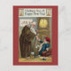 Um clássico cartão vintage de Ano Novo mostrando Padre Time apertando as mãos com Janeiro Ist que é representado por uma criança pequena. Um relógio de avô mostrando o tempo como meia-noite está no fundo.