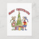 Dois camundongos de férias bonitos, um segurando uma bengala doce e um segurando um presente em frente a uma árvore de Natal com o texto 'Christmouse Feliz'.