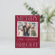 Cartão-postal de férias moderno com a sua dentro horizontal de fotografia instantânea branca. A expressão "Feliz e Brilho" é apresentada em letras brancas com fundo de amora. Personalize a frente do cartão postal de feriado de instantâneo com a saudação personalizada, o nome da família e o ano. O cartão postal reverte para exibir seu endereço de devolução e sua mensagem pessoal.