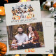 Um design moderno Feliz Halloween com sua imagem personalizada com pequenas raças de cães; Yorkie, Shih Tzu, Maltês, e um Poodle, rodeados de abóboras bonitinhas, um morcego e balões de cinza. Deseje à família e aos amigos um Feliz Dia das Bruxas com este cartão personalizado.