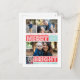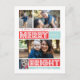 Cartões com fotos brilhantes e modernos de férias em vermelho e azul com as palavras "Feliz e Brilho" que podem ser personalizadas com 4 fotos e uma assinatura.