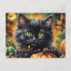 Cartão Postal De Festividades Feliz Gato de Halloween com abóbora