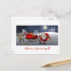 Cartão perfeito para Cartões de natal ou presentes atrasados. Um Papai noel de desenho e Rudolph consertando seu trenó quebrado.