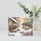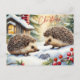 Cartão Postal De Festividades Feliz Natal Aquarelas Hedgehogs na Floresta