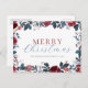 Este belo cartão postal de feriado apresenta borda floreal com cor d'água com bagas vermelhas e folhas verdes azuis. Texto "Feliz Natal" e personalizado com seu nome de família e ano. A parte traseira contém texto personalizado e endereço de retorno. Fácil de personalizar clicando em "Personalizar".