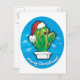 Uma design de Natal elegante com um cacto decorado com um chapéu de Papai Noel.