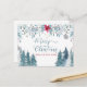 Cartaz de anúncio móvel de Watercolor Holiday com floresta de inverno e garland botânica de poinsettias e folhagem de inverno. O Feliz Natal é marcado à mão e o design pode ser editado para um solteiro ou para uma família. O texto diz "feliz natal da minha / nossa nova casa" e você pode adicionar uma mensagem personalizada com seu novo endereço no verso. Um design elegante para que todos saibam seu novo endereço para o feriado.