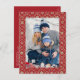 Um padrão vermelho de Floco de Neve, inspirado nos nórdicos, com vermelho contra o fundo da cinza. Um estilo elegante para feriados e Natal. Este simples Cartões de foto de Natal Holiday apresenta um cheio sangrado com uma borda branca. Uma tenda e moderna rústica saudação de Feliz Natal no lado frontal ajustados 1 Foto. Esta design apresenta um floco de neve vermelho de Natal inverno, foto de família 1 uma foto, cartões de Natal, design tradicional de inverno clássico, mínimo elegante e simples minimalista, roteiro de caligrafia na moda, texto tipográfico branco, citação de Natal feliz dizendo simples, vermelho e verde simples florescimento, fotos de Natal saudando cartões postais orçamentários