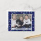 Estes cartões postais de Natal simplesmente elegantes incluem um fundo zigzag listrado feito para parecer constelações em branco em azul. Sua foto horizontal da família preenche o centro, junto com uma linha curta de texto personalizado. Envie cartões de natal com estes cartões postais lindos.