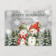 Faça uma declaração impressionante nesta temporada de festas com este cartão postal de festas bonitinho com dois bonecos de neve com aquarelas com chapéus e lenços.
