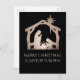Elegante design moderno — Natividade iluminada com a estrela de Belém. Letra branca e negra: Feliz Natal Um Salvador É Nascer. Cartão postal de Natal.