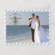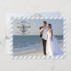 Cartão Postal De Festividades Feliz Náutica e Casado, Blue Stripes-Duas Fotograf