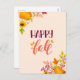 Cartão Postal De Festividades Feliz outono de Abóbora e Folha de outono