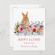 Cartão Postal De Festividades Felz pascoa Bunny e Flores Selvagens